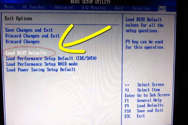 Look for an option that says ‘Load Default’ or ‘Factory Default’ and select it.